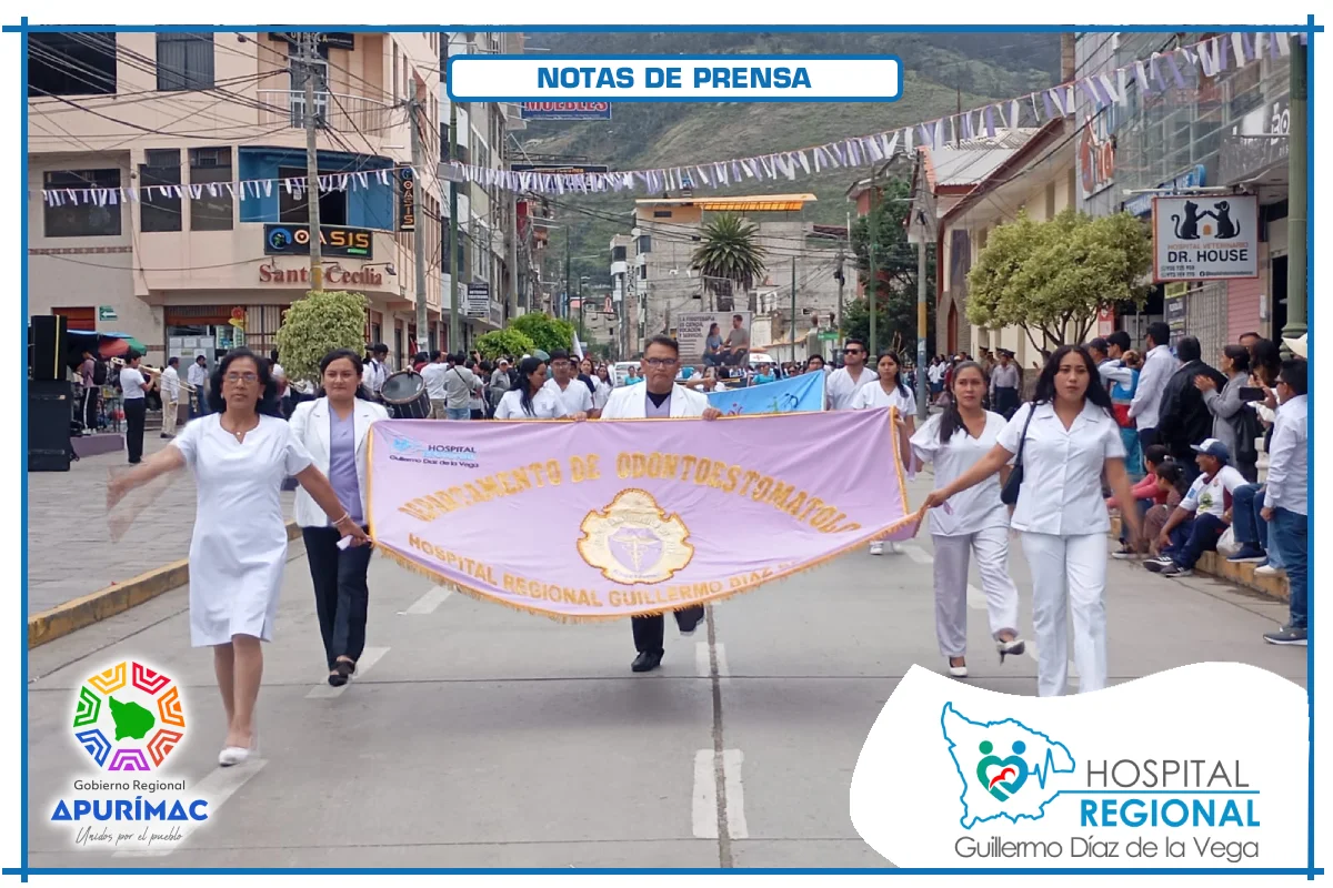 La delegación estuvo encabezada por el director, su equipo de gestión y el personal asistencial y administrativo, quienes desfilaron con entusiasmo, disciplina e identificación institucional. Las autoridades presentes, entre ellas el Abog. José Miranda Espinoza, primer regidor de la Municipalidad Provincial de Abancay; representantes de la Policía Nacional del Perú; el M.C. José Ponce Velásquez, decano del Colegio Médico de Apurímac; y el C.D. Juan Chavigurí Monzón, decano del Colegio de Odontólogos, saludaron el paso del nosocomio regional.