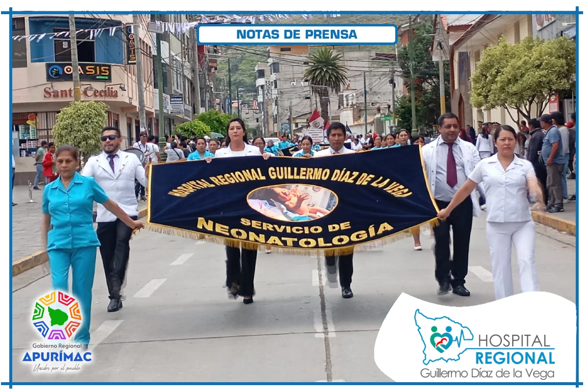 En el marco de las actividades oficiales por el 62.° aniversario de creación institucional, servidores del Hospital Regional Guillermo Díaz de la Vega de Abancay participaron el domingo 16 de noviembre en la ceremonia de izamiento del Pabellón Nacional, desarrollada en la Plaza Micaela Bastidas, reafirmando el compromiso de la institución con la salud de la población abanquina y apurimeña.