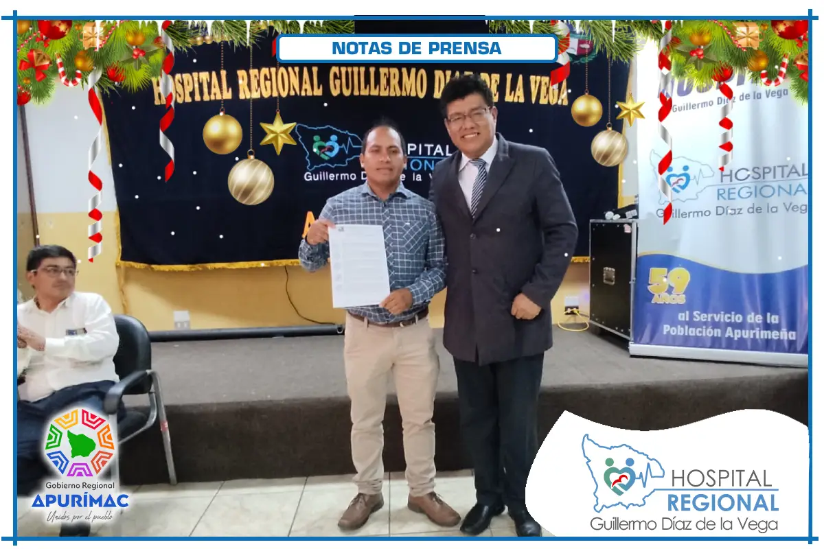El acto protocolar estuvo presidido por el M.G. Joel Bernardo Pimentel Marín, director del Hospital Regional Guillermo Díaz de la Vega, quien destacó la importancia de este proceso, señalando que representa un logro significativo para cada trabajador, resultado de su esfuerzo, dedicación y constante superación profesional. Asimismo, exhortó a los beneficiarios a fortalecer su compromiso institucional y continuar brindando un servicio de calidad en favor de la salud de la población apurimeña que acude al nosocomio regional.