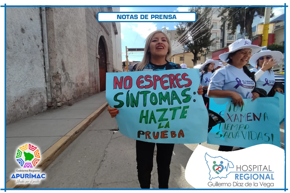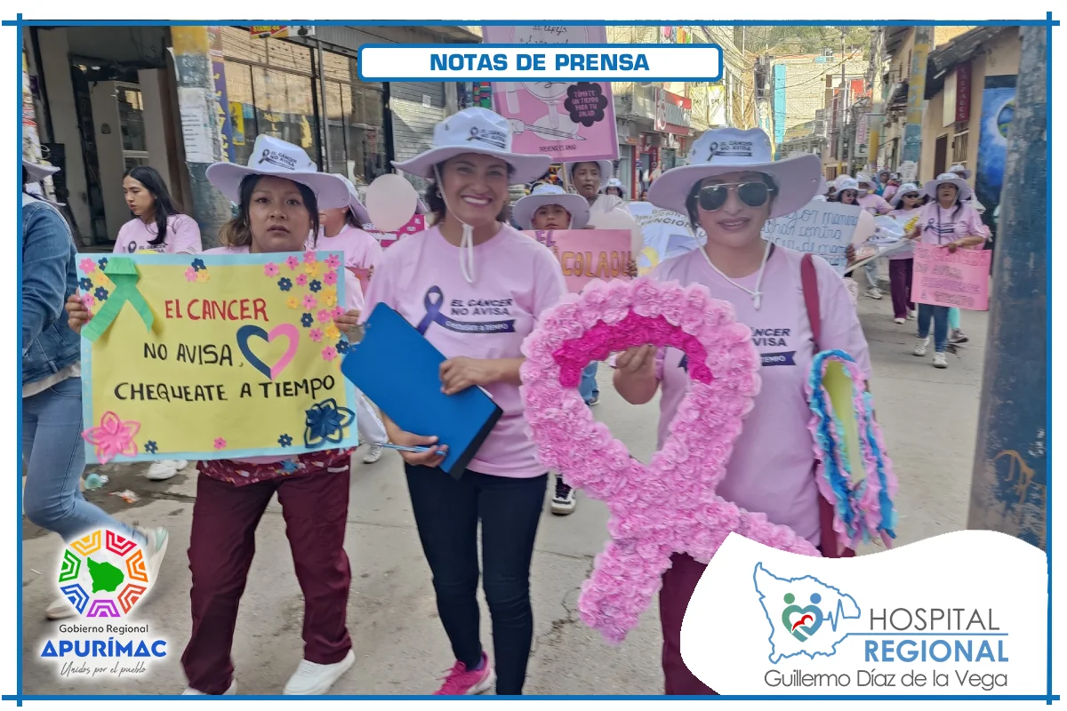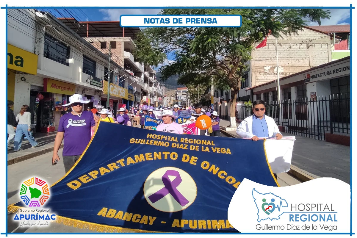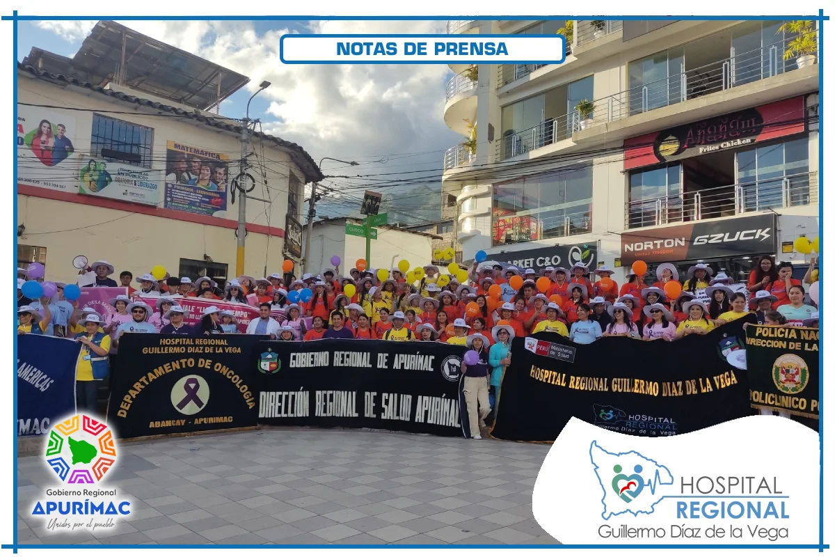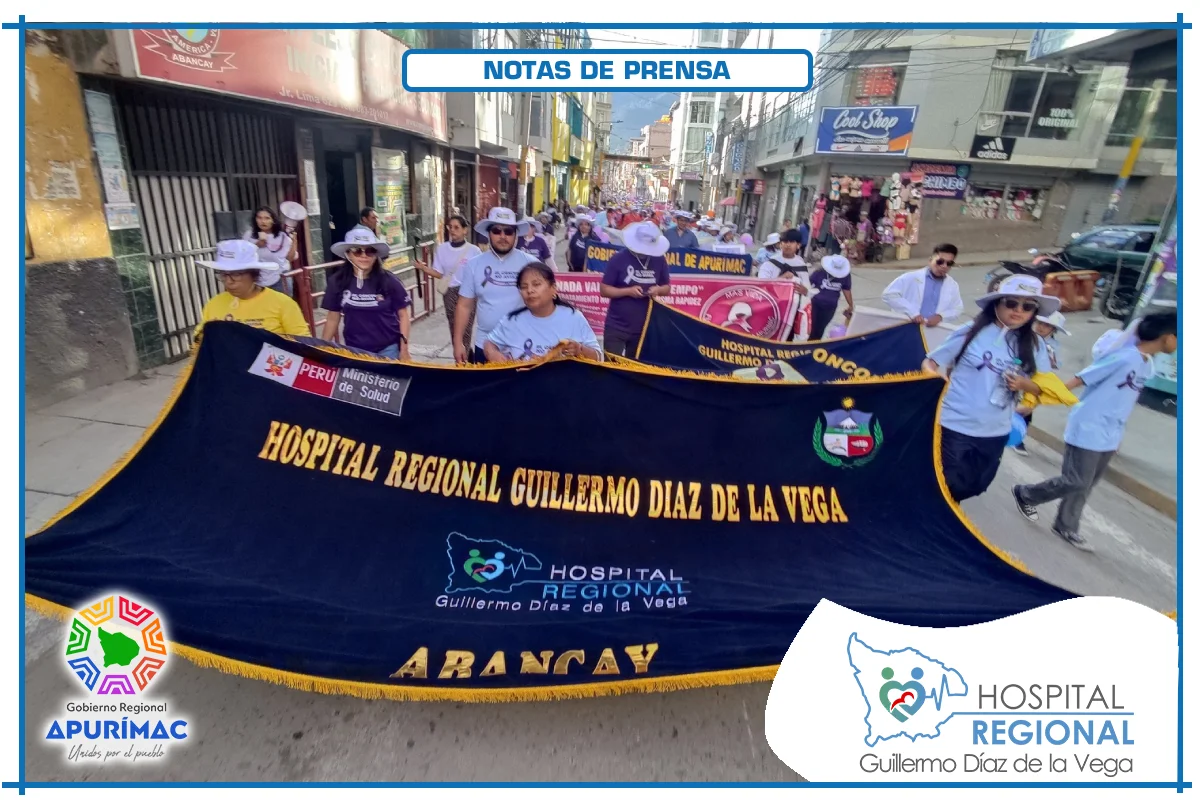 Con el firme compromiso de sensibilizar a la población sobre la importancia de la prevención, el diagnóstico precoz y el tratamiento oportuno del cáncer, el Hospital Regional Guillermo Díaz de la Vega de Abancay participó activamente en una multitudinaria marcha que recorrió las principales arterias de la ciudad.