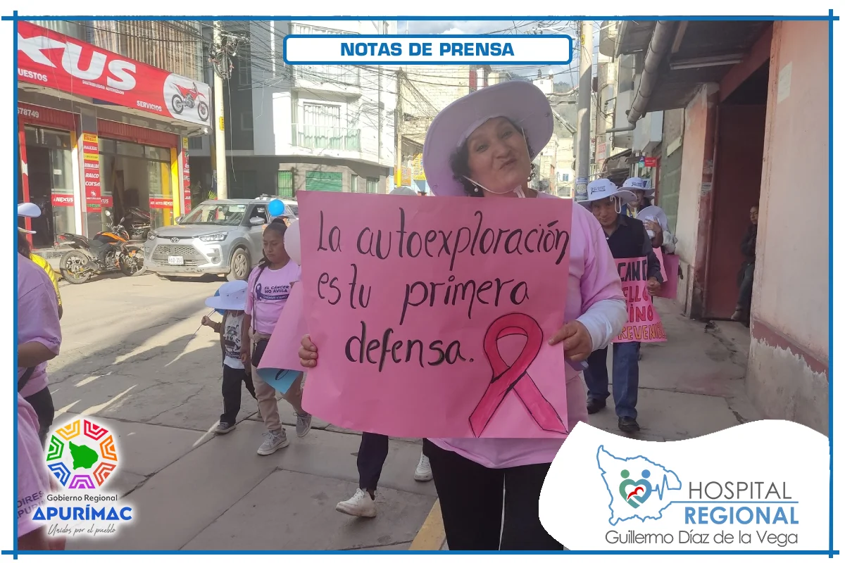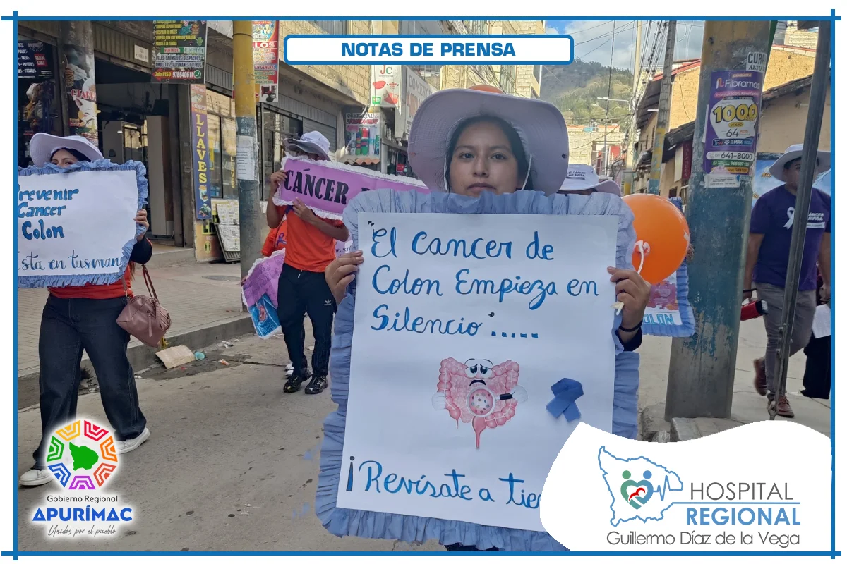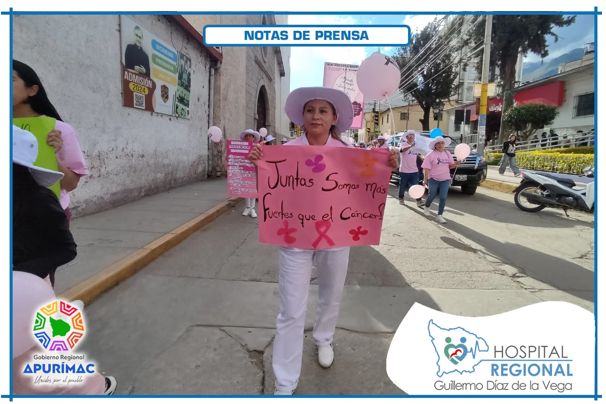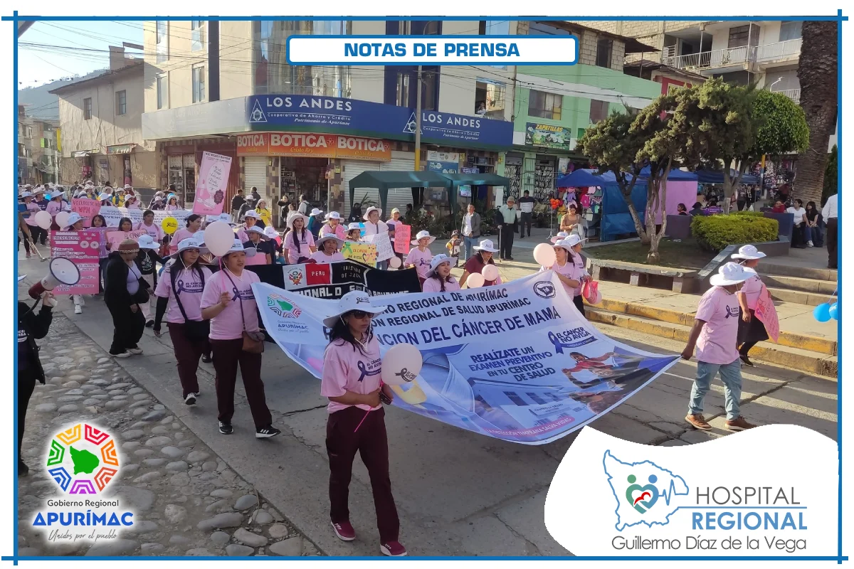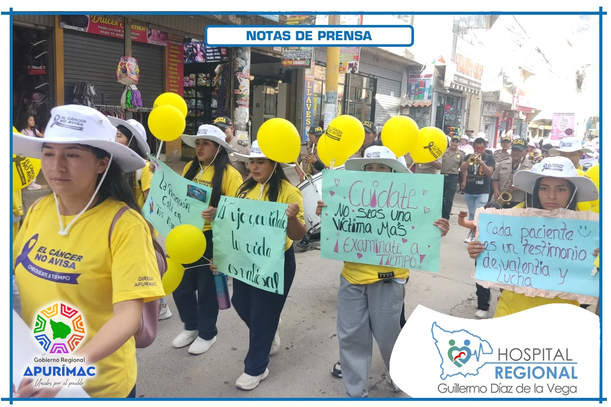 Con el firme compromiso de sensibilizar a la población sobre la importancia de la prevención, el diagnóstico precoz y el tratamiento oportuno del cáncer, el Hospital Regional Guillermo Díaz de la Vega de Abancay participó activamente en una multitudinaria marcha que recorrió las principales arterias de la ciudad.