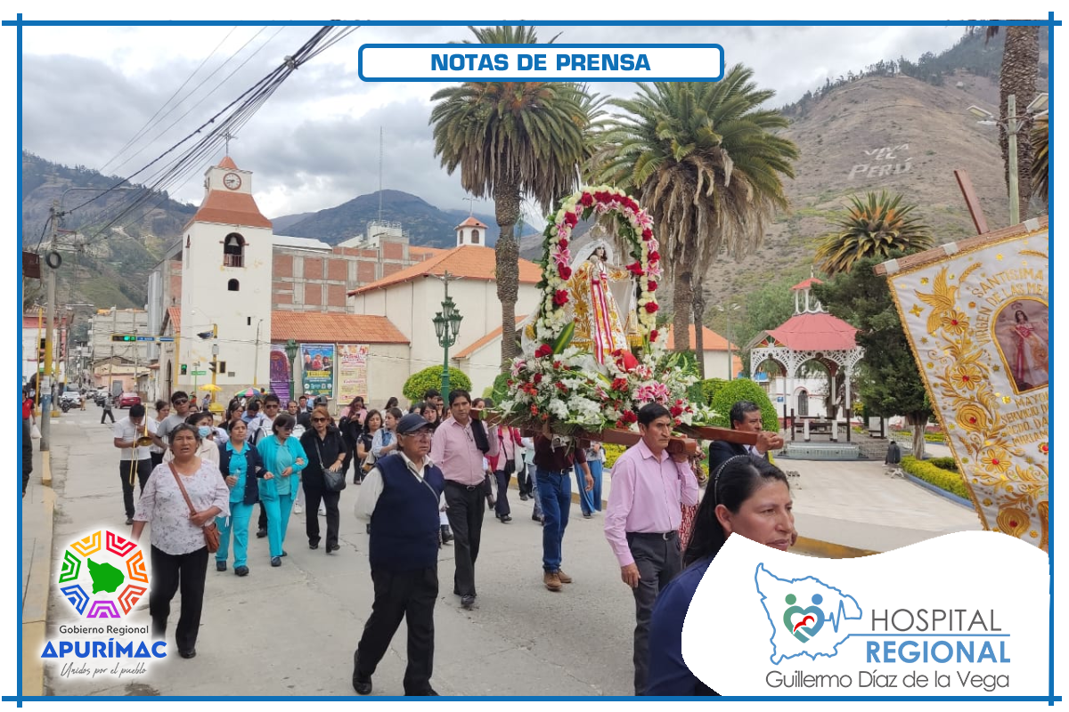 Con profundo fervor religioso, el área de Conservación y Limpieza del Hospital Regional Guillermo Díaz de la Vega de Abancay rindió un emotivo homenaje a la imagen de la Santísima Virgen de las Mercedes, patrona espiritual del nosocomio regional, quien en procesión visitó diversas instituciones públicas y privadas de la ciudad.