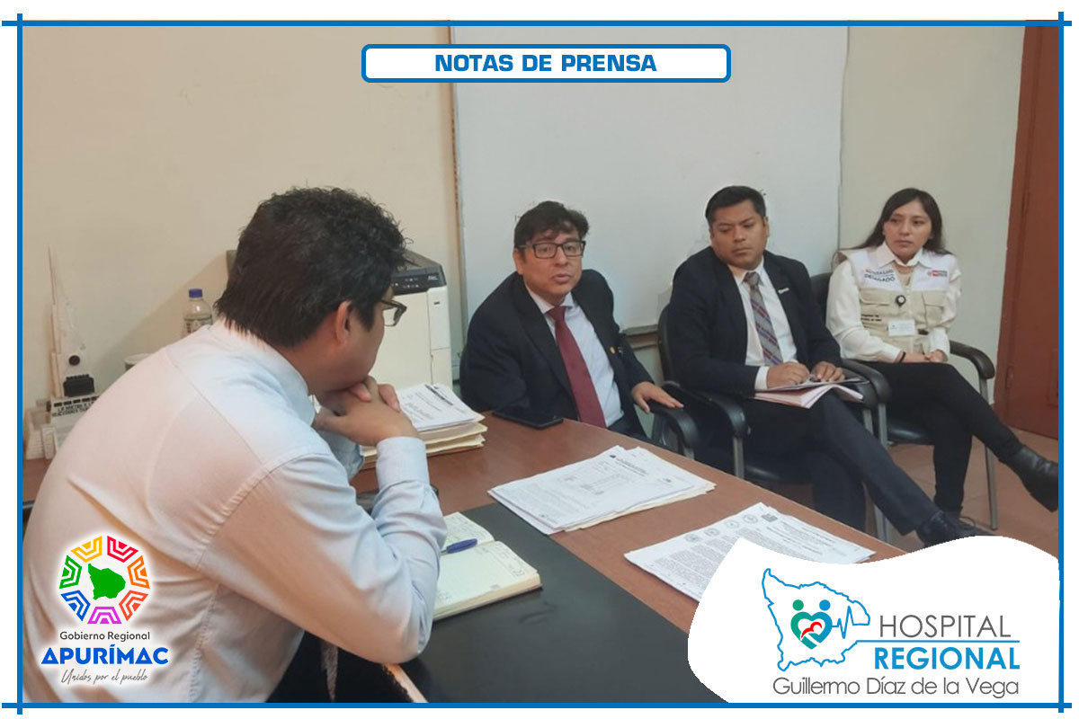 Con el firme propósito de garantizar una atención en salud de calidad y fortalecer la supervisión de los servicios prestados a la ciudadanía, el Director del Hospital Regional Guillermo Díaz de la Vega, MG. Joel Bernardo Pimentel Marín, sostuvo una reunión estratégica con altos representantes de la Superintendencia Nacional de Salud (SUSALUD).