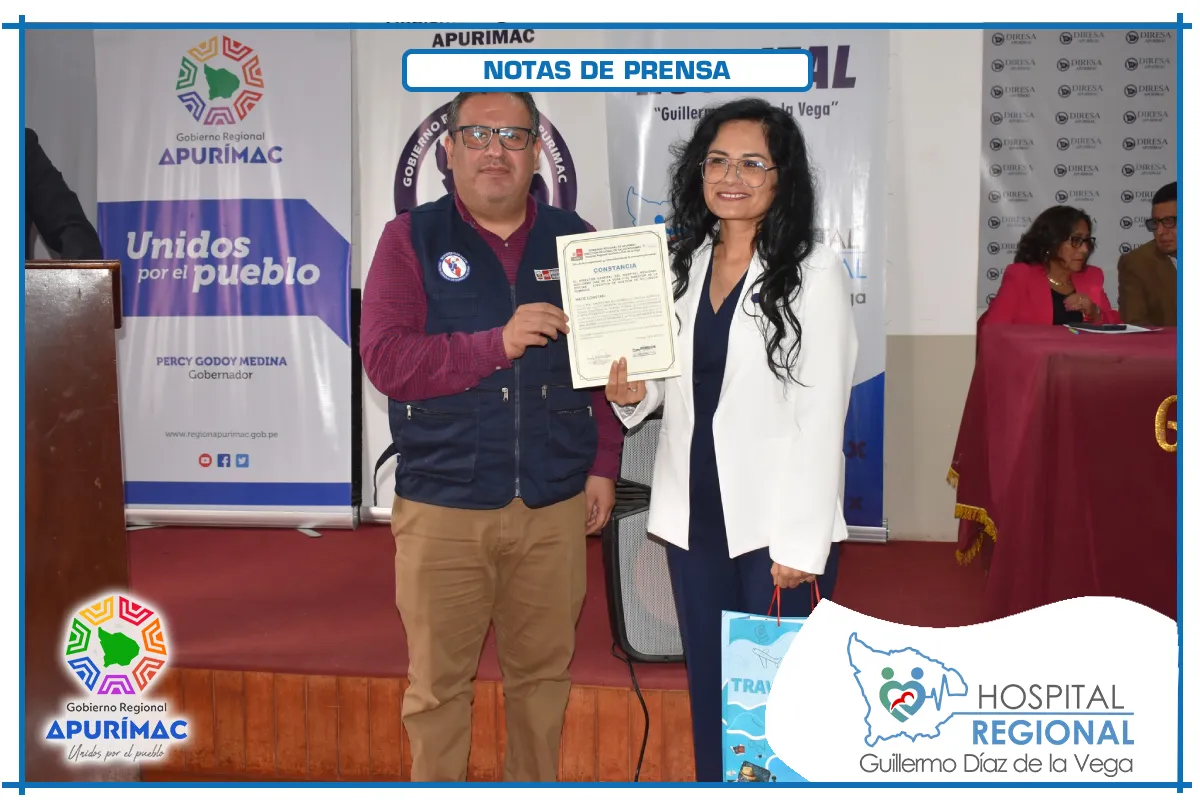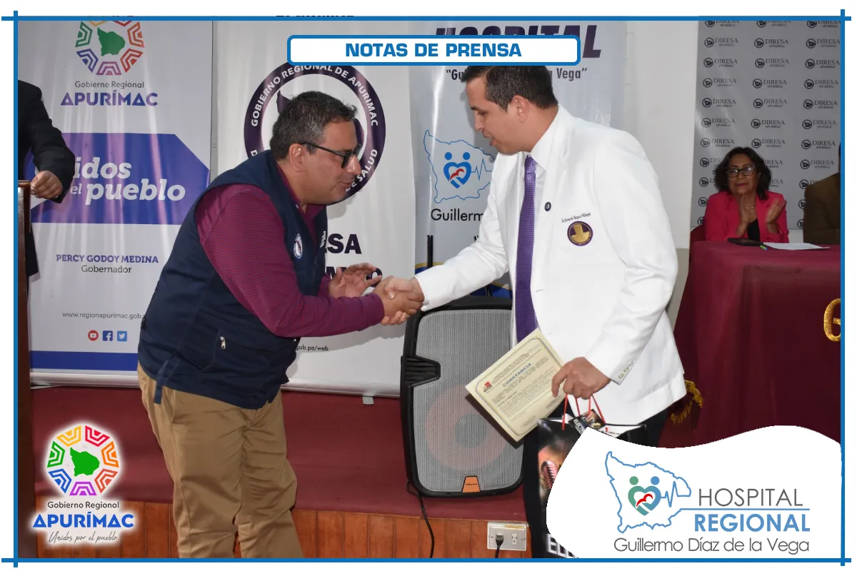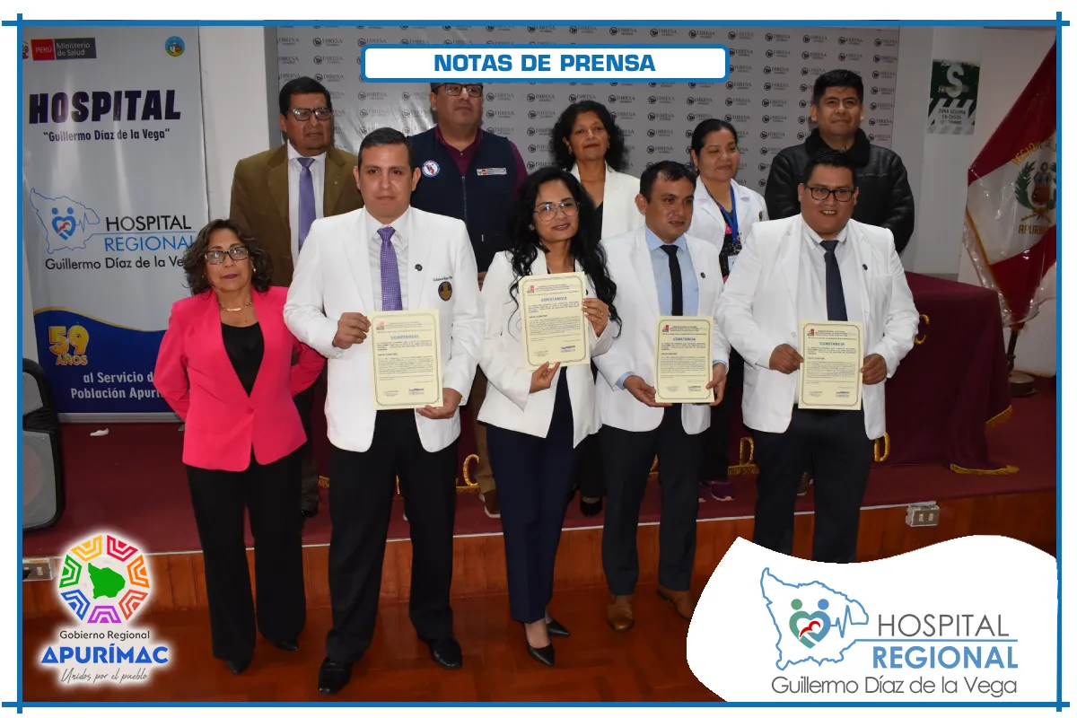 La ceremonia se realizó en el auditorio de la Dirección Regional de Salud Apurímac, y contó con la presencia del Dr. Luis Enrique Carrión Herrera, Director Regional de Salud, y de la Dra. Catty Sarmiento Valenzuela, representante del Colegio Médico del Perú - Consejo Regional XXII Apurímac, quienes también felicitaron a los nuevos especialistas por su compromiso con la salud pública regional.